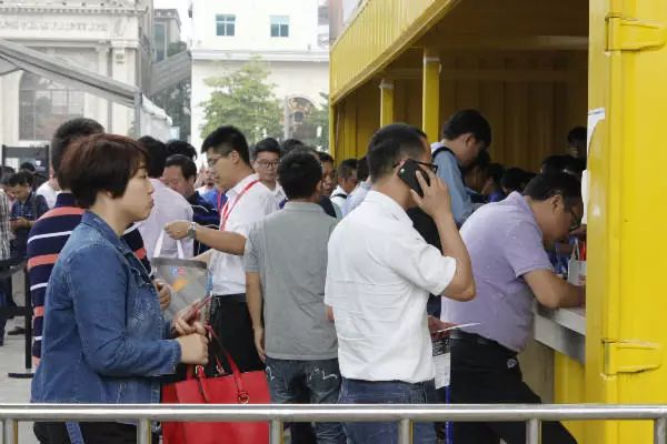 開展后,展會(huì)入口處排氣長(zhǎng)龍。
